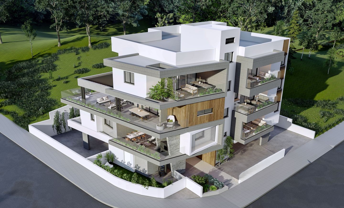 Located on a hill in Latsia, one of the highest points of the area, this modern three-story building offers amazing panoramic views and a peaceful neighborhood atmosphere.